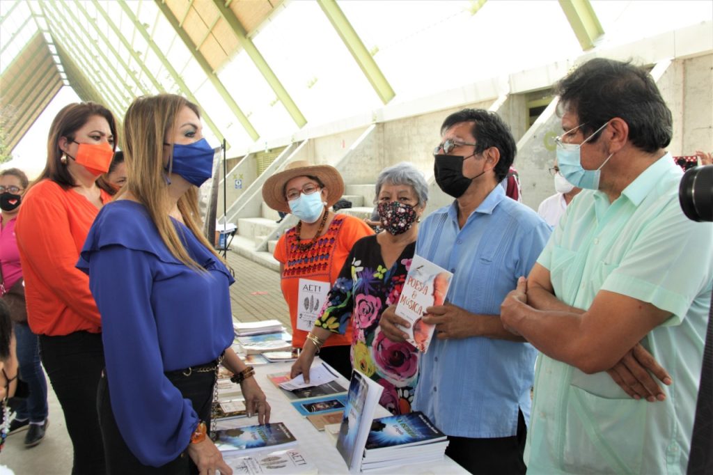 En el marco del Día del Libro, la presidenta municipal Rosa Irene Urbina Castañeda, reiteró su compromiso con las actividades culturales y educativas, mientras hacía un recorrido para conocer los talleres y la exposición de libros que se montó.