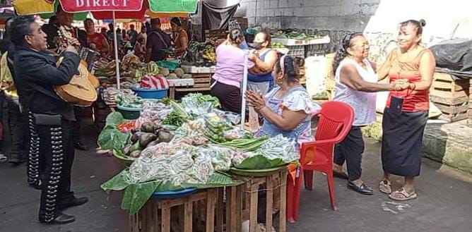 En las instalaciones del mercado el mariachi y la marimba alegraron a las madres con las mañanitas y con diversas melodías.