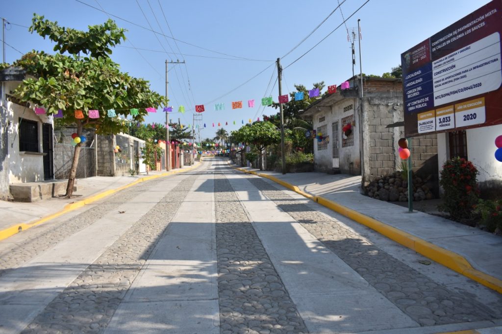 Tapachula, Chiapas.- Con la nueva obra de pavimentación mixta de calles entregada por el Ayuntamiento de Tapachula a las familias de la colonia “Los Sauces”, el Ayuntamiento de Tapachula mejora la accesibilidad de más de 3 mil habitantes que ahora tienen modernas vialidades construidas con materiales de calidad.