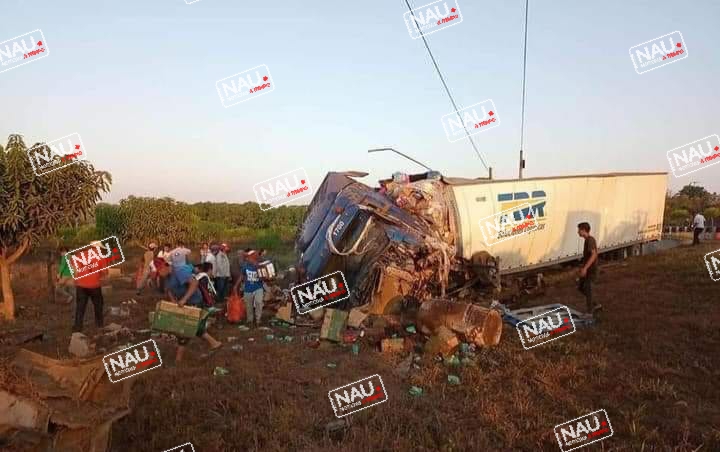 Después del accidente se roban la mercancía de un tráiler en Escuintla.