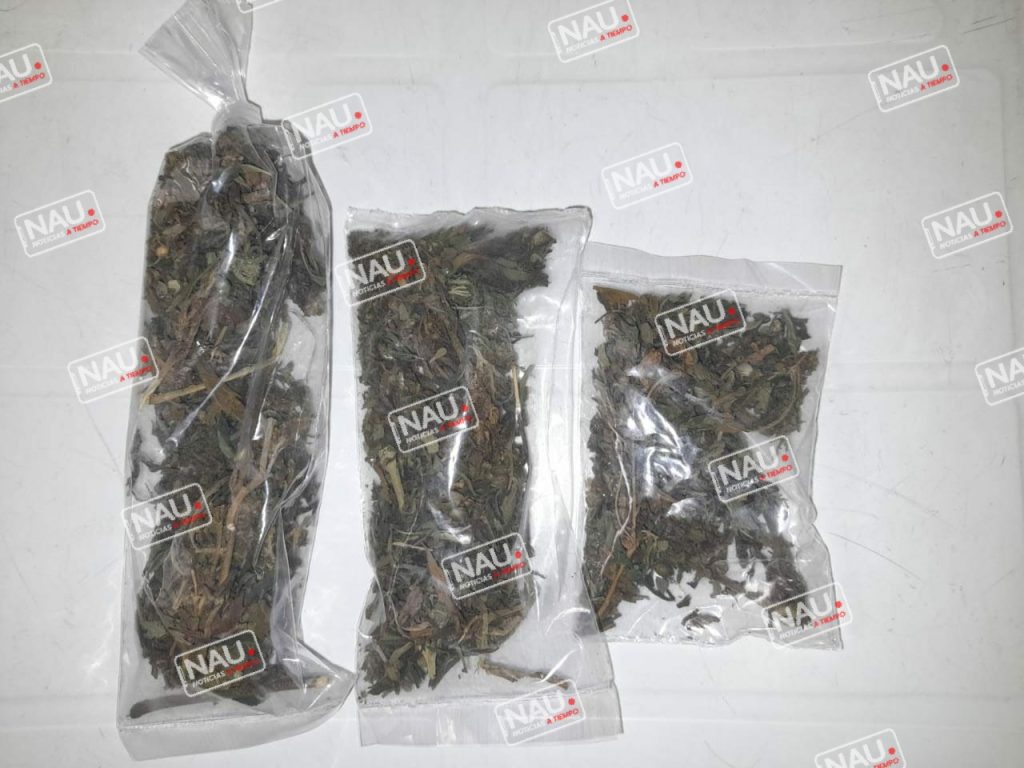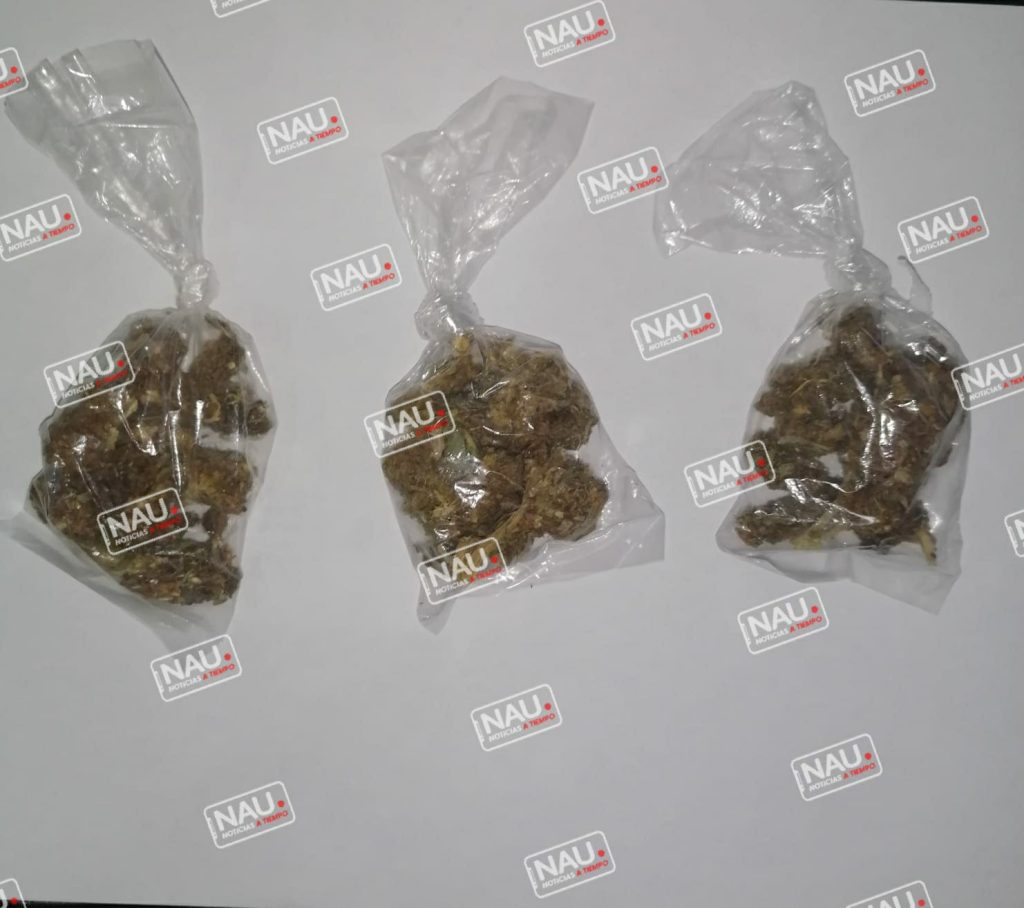 Al aplicarle una revisión corporal a la persona se le detectó tres bolsitas transparente que contiene marihuana, por lo que se le informo que sería detenido y puesto a disposición de un Fiscal del Ministerio Público quién determinará su situación jurídica en las próximas horas.