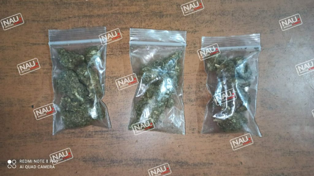 El detenido dijo llamarse Alexis Giovanni “N” quién caminaba sobre la dirección antes mencionada, al aplicarle una revisión se la encontró en la bolsa derecha del short tipo bermuda, tres bolsas de nylon transparente que contenía hierba seca al parecer marihuana.