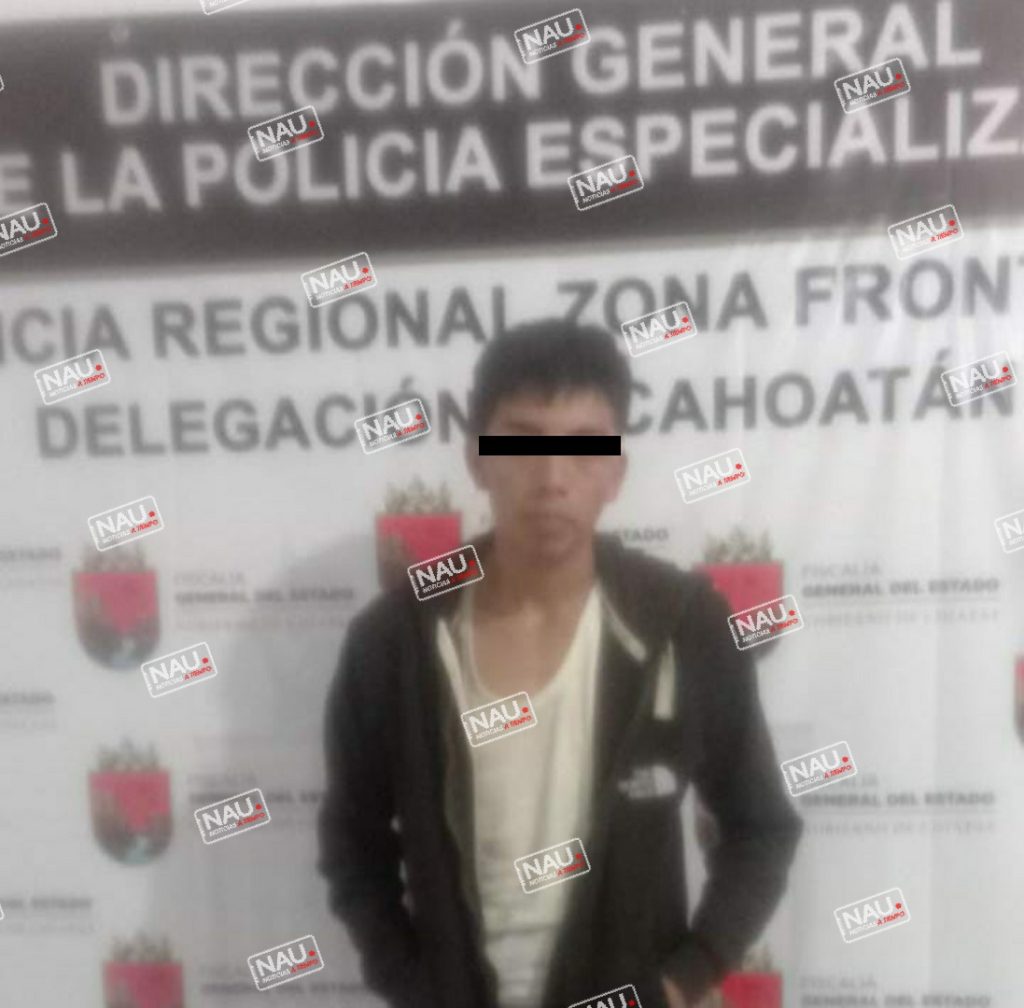 Cacahoatán, Chiapas.- Alex Iván “N” de 22 años de edad, fue detenido sobre la séptima Norte esquina con 17 calle Oriente del barrio Guadalupe el municipio de Cacahoatán, acusado del delito contra la salud en su modalidad de posesión simple.