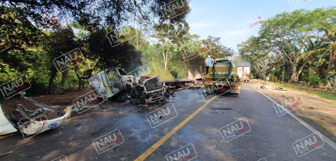 Un grupo de personas del ejido León Brindis, reportaron el choque de los dos tráileres, a la altura del kilómetro 177, tras el impacto las dos unidades se incendiaron donde fallecieron los dos conductores.