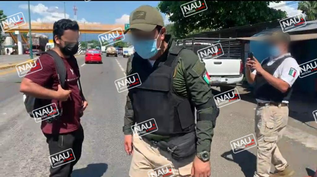 Los elementos del INM y de GN agreden a periodistas que cubren la caravana en Huehuetán.