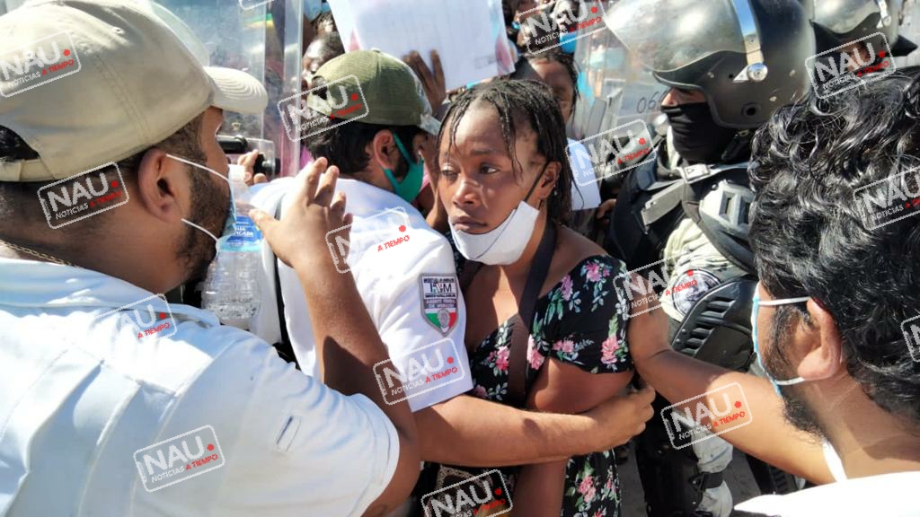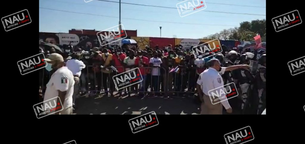 Minutos más tarde llegó otro grupo de migrantes en manifestación; eran aproximadamente 400 migrantes de nacionalidad cubana, nicaragüenses, haitianos, hondureños, salvadoreños, africanos y venezolanos, quienes también exigían ser atendidos y que les entregaran documentos QR.