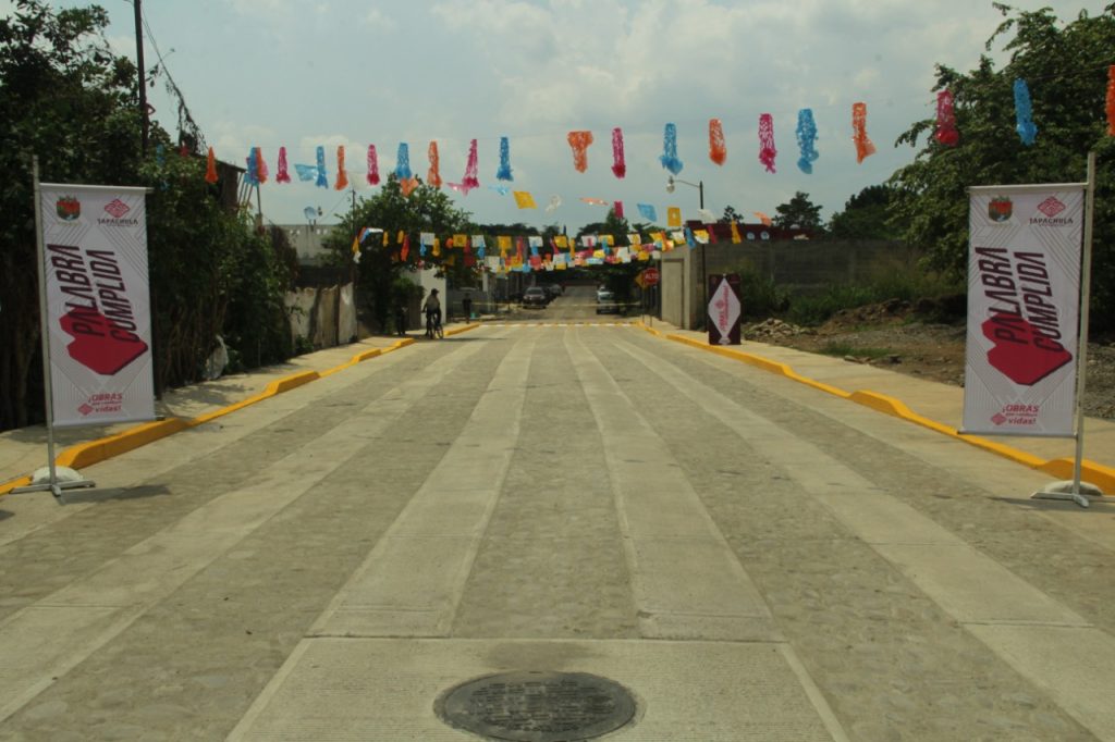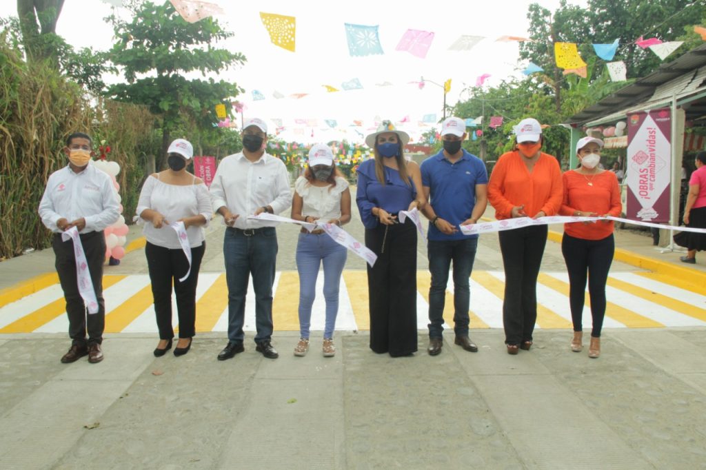 La obra ejecutada con recursos del Fondo de Infraestructura Social Municipal (FISM) incluye la pavimentación mixta de calles, banquetas, guarniciones, señalética y las obras inducidas de drenaje y agua potable.