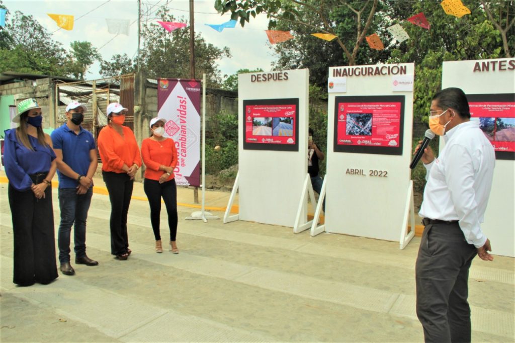 Tapachula, Chiapas.- El Ayuntamiento de Tapachula entregó una nueva obra de pavimentación con concreto mixto, con una inversión de Un millón 181 mil pesos, en la colonia La Ceiba, al sur-oriente de la ciudad, con lo que se amplía la conectividad y la seguridad de todo ese sector.