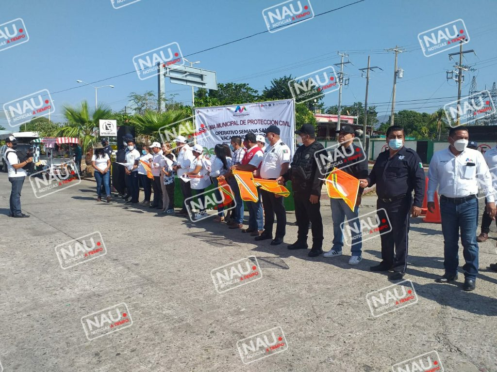 El alcalde Elmer Nicolás Noriega Zavala, acompañados de regidores y funcionarios, dieron el banderazo de salida del operativo semana santa vacaciones seguras 2022.