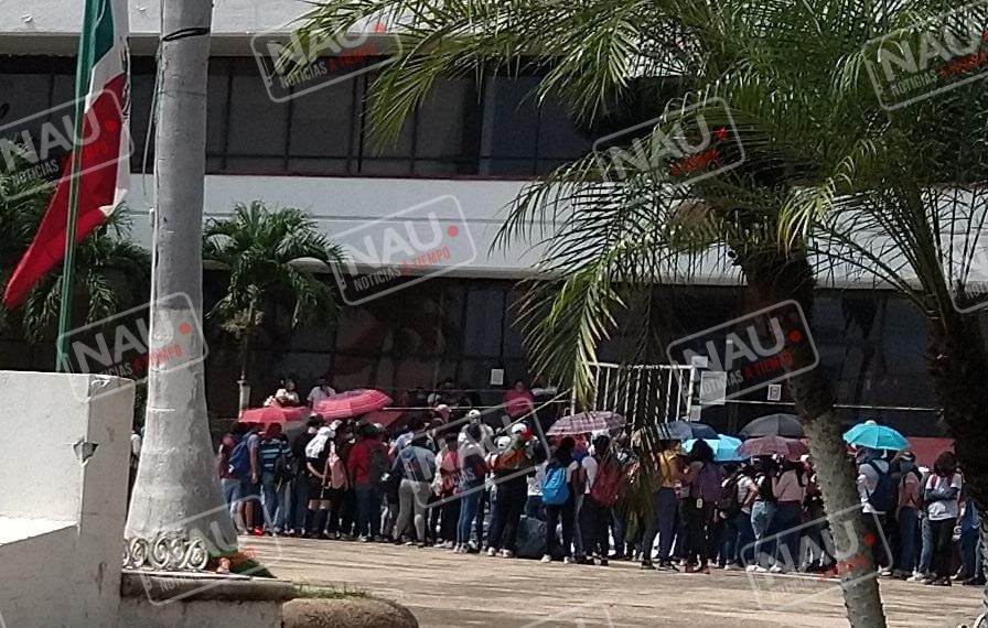 Los estudiantes que mantenían el bloqueo alrededor de las 14:00 horas, se subieron a los 4 autobuses y se trasladaron al parque Miguel Hidalgo, donde exigían frente al palacio municipal, la libertad de los estudiantes detenidos en la capital del estado.