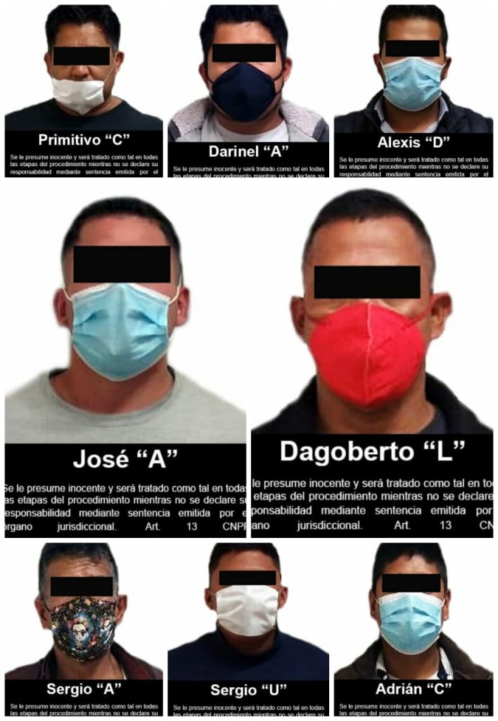 De acuerdo con el Informe Policial Homologado (IPH), elementos de la PFM, al realizar actos de Investigación, detuvieron en flagrancia a Dagoberto “L”, Darinel “A”, Sergio “U”, Alexis “D”, José “A”, Adrián “C”, Primitivo “C” y Sergio “A”, en la caseta de cobro de Chiapa de Corzo, con dirección de Tuxtla Gutiérrez a San Cristóbal de las Casas.