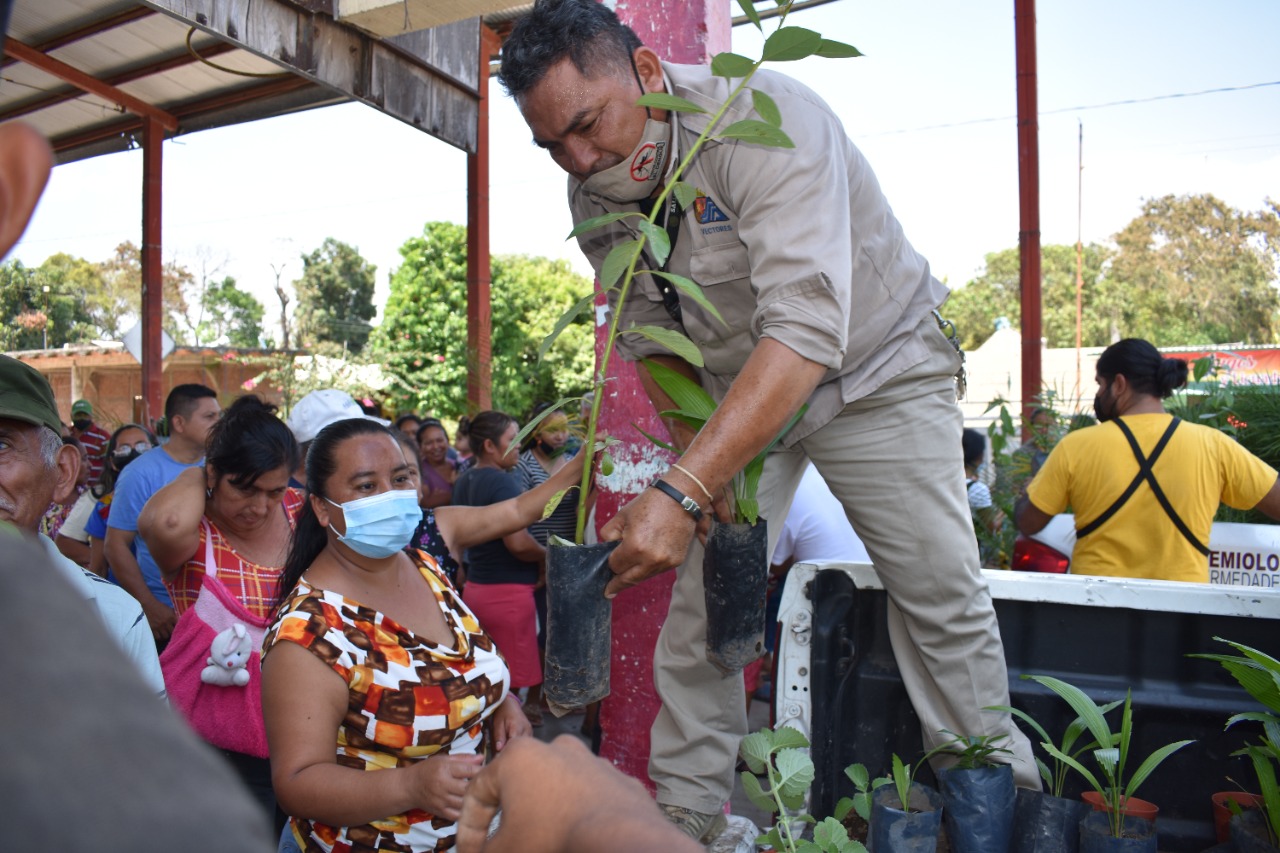 En la plaza techada de esa comunidad rural se inició la entrega de plantas como canela, orégano, pimienta y palmarecas, así como de árboles frutales como guayaba, guanábana y aguacate, entre otras, que fueron distribuidas a los habitantes gracias a una acción coordinada entre el Ayuntamiento que preside Rosa Irene Urbina Castañeda, el Distrito Sanitario VII y la Subsecretaría de Desarrollo Forestal del Gobierno del Estado de Chiapas.