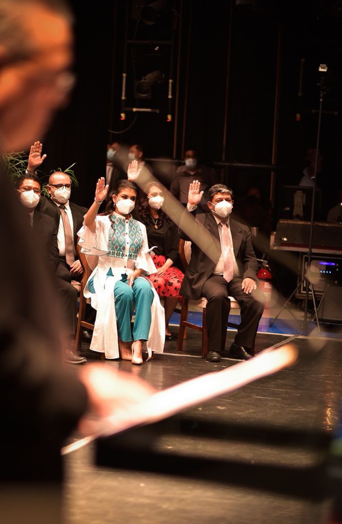 Este viernes 01 de Octubre en conjunto de su cabildo tomó protesta como presidente municipal de San Cristóbal de las Casas, Mariano Alberto Díaz Ochoa. El alcalde acompañado de su cabildo, entre ellos la joven regidora sancristobalense Cynthia Ricci se viraliza en redes sociales al portar emblemático traje elaborado del diseñador frailescano Raúl Avendaño, con tejidos de artesanos del municipio de San Andrés Larráinzar, Chiapas. En el bordado resalta él Muk Ta Luch, símbolo del universo maya, mismo que interpreta la salida del sol desde el cielo hasta el inframundo transitando los 4 puntos cardinales.