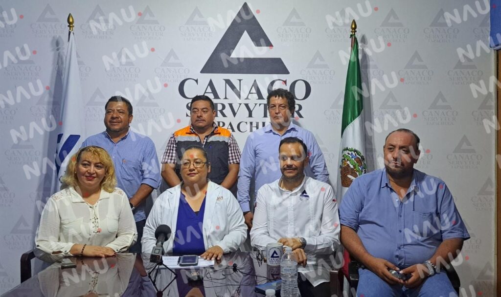 En rueda de prensa la titular del distrito VII de la SS, doctora María Elsa López González, acompañada del presidente de Canaco Jorge Zúñiga, del representante de industriales de la masa y la tortilla Alejandro Ricaldi Jiménez y de los consejeros del transporte organizado Noé Pinto y Abraham Téllez informaron sobre las acciones que se desplegarán y que incluyen instalaciones empresariales como la CANACO, City Club y la terminal de Corto Recorrido.