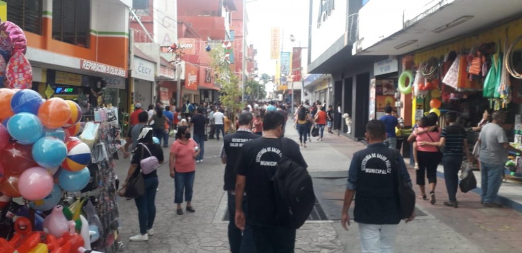Por ello, los operativos de vigilancia en los centros comerciales para verificar las medidas sanitarias siguen realizándose en coordinación con otras dependencias para verificar el cumplimiento de las normas sanitarias como sana distancia, aforo reducido, uso obligatorio de cubreboca, alcohol gel y toma de temperatura corporal.