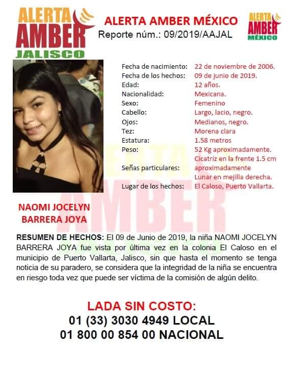 La menor fue reportada con fecha 9 de julio del 2019, cuando tenía 12 años de edad, sobre los hechos se dio a conocer que el 9 de junio de 2019, la niña fue vista por última vez en la colonia El Caloso en el municipio de Puerto Vallarta Jalisco, sin que se haya tenido noticia de su paradero y temían por la integridad de la niña desde ese momento.