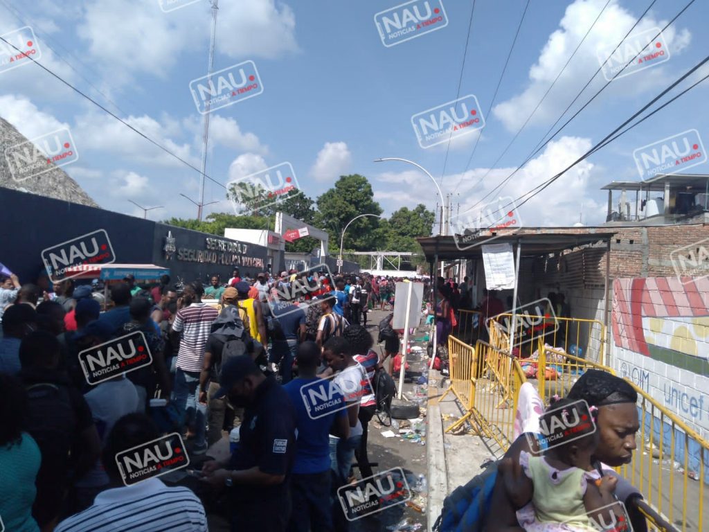 TAPACHULA, CHIAPAS.- Poco antes del mediodía se registró un zafarrancho a las afueras de la oficina de regulación migratoria en Tapachula, entre migrantes y agentes del INM y de la Guardia Nacional, al decir de los extranjeros fueron engañados con la supuesta agilización de sus trámites.