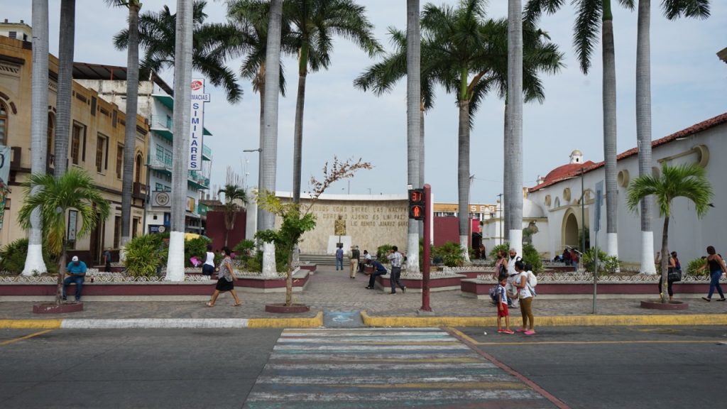 Tapachula, Chiapas. – Con el propósito de prevenir accidentes automovilísticos y garantizar la seguridad de los peatones que diariamente circulan por el centro histórico de la ciudad, la Dirección de Protección Civil Municipal realizó trabajos de reacondicionamiento de las cintas y vallas perimetrales que impiden el acceso al parque central Miguel Hidalgo, Juárez y de las Etnias.