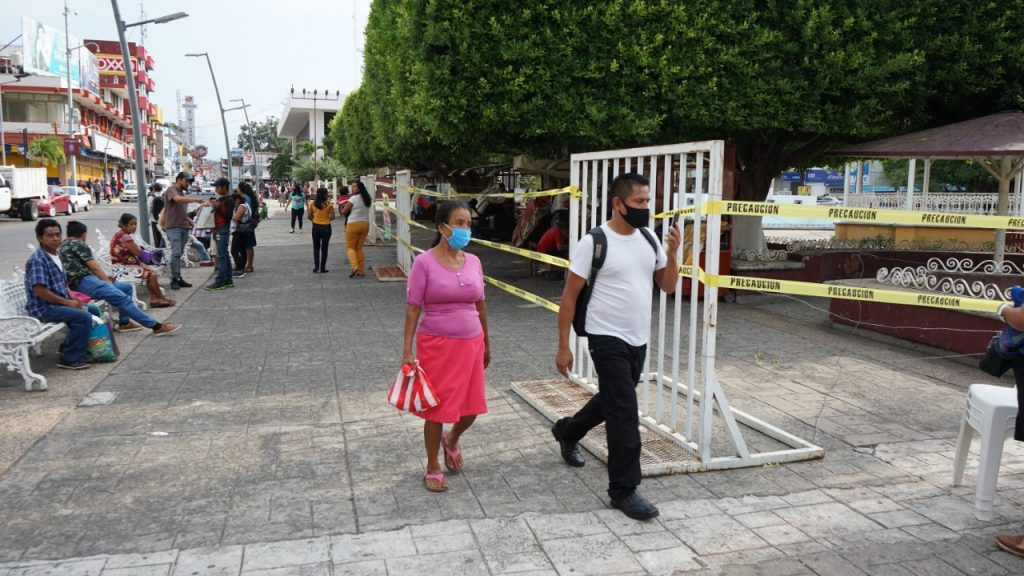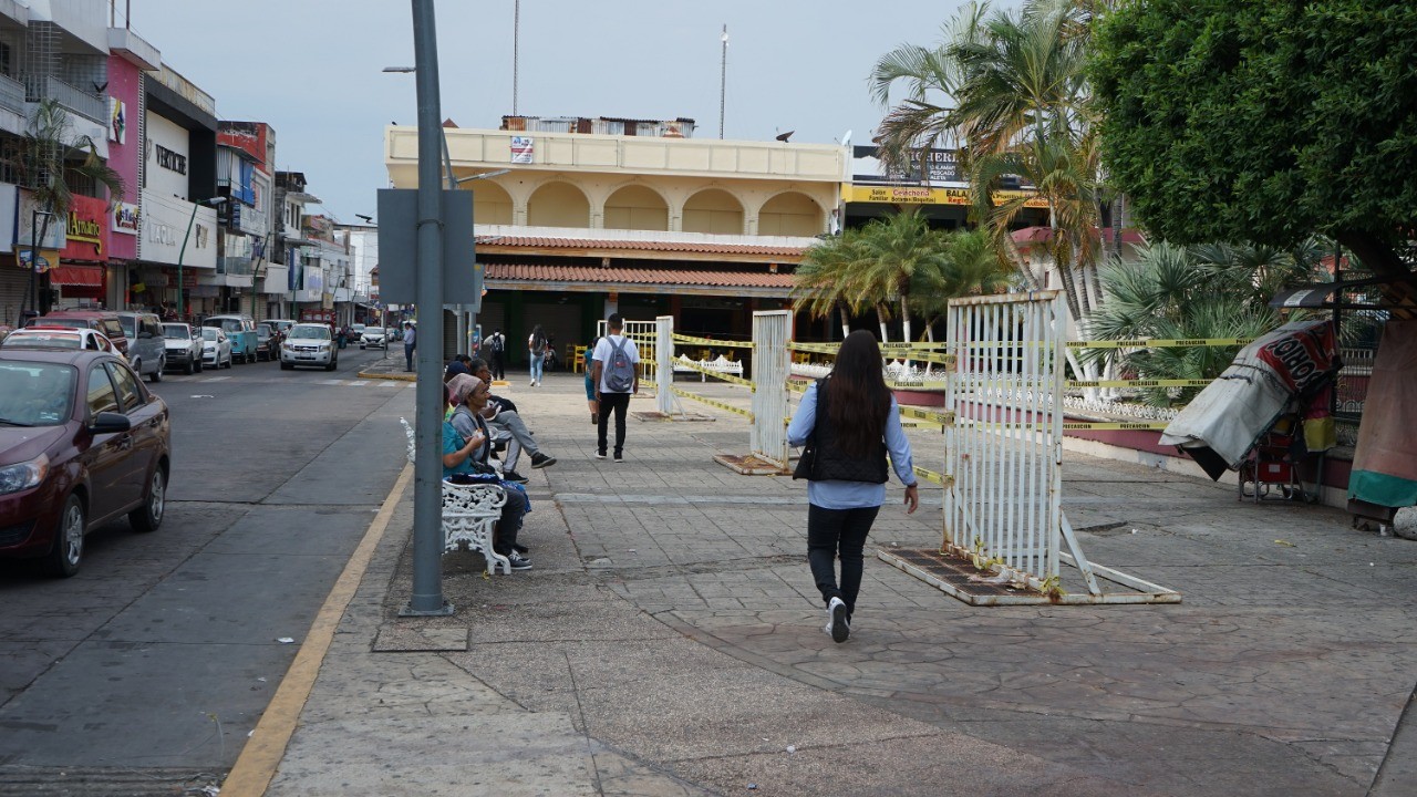 Únicamente el personal de Protección Civil Municipal reacondicionó las cintas amarillas y vallas perimetrales, a efecto de preservar la seguridad de los peatones y mejorar los puntos de cruce del parque central y otros espacios públicos.