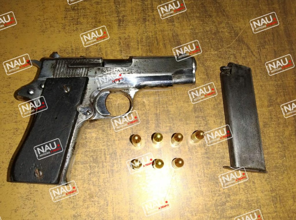 Al aplicarle una revisión se le encontró una pistola tipo escuadra calibre 9 mm, con un cargador abastecido con 7 cartuchos útiles.