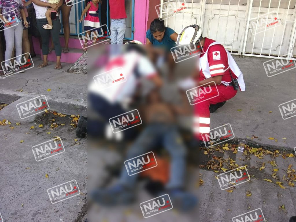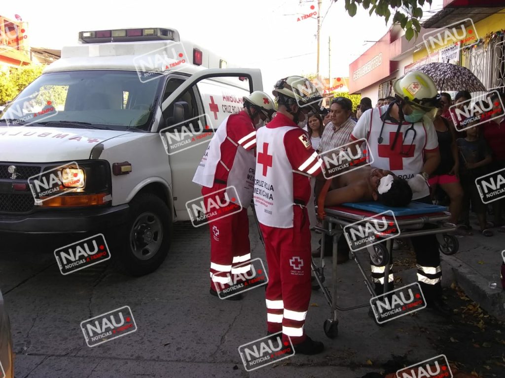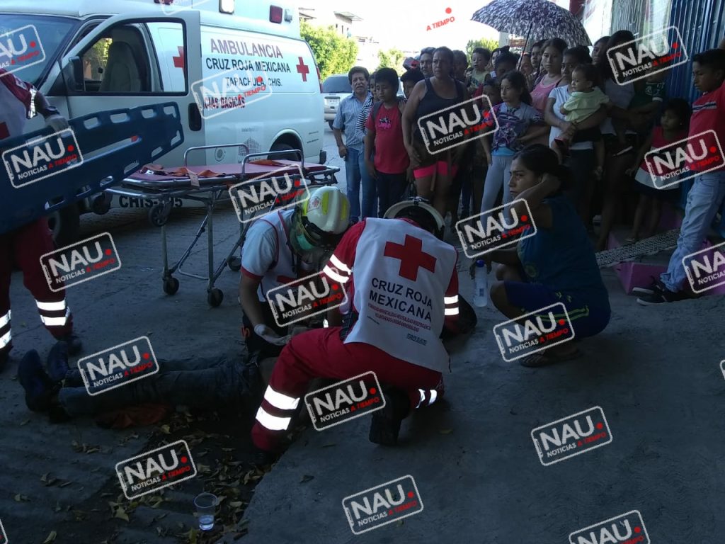 Paramédicos de la Cruz Roja Mexicana, arribaron al lugar donde atendieron a Adrián “N” de 32 años de edad, fue trasladado al Hospital General de Tapachula.