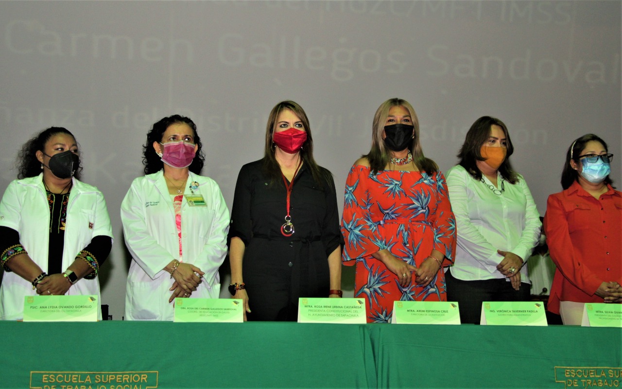Tapachula, Chiapas.- Al participar en la ceremonia de graduación de la Generación 2017-2021 de la Licenciatura en Trabajo Social de la Escuela de Trabajo Social “Jesús Aquino Juan”, la presidenta municipal de Tapachula, Rosa Irene Urbina Castañeda, pidió a los egresados a seguir preparándose para ayudar, servir y transformar a la sociedad.