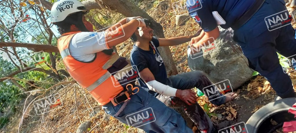 Paramédicos de servicios auxiliares de emergencia, arribaron al lugar quiénes atendieron a lesionado de 30 años de edad originario de Pachuca – Hidalgo.