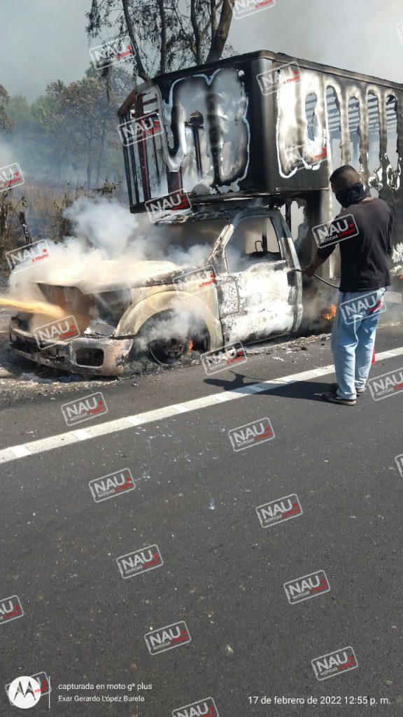 No pude hacer nada ya que el fuego de inmediato consumió el motor y la carrocería, quedó reducido a chatarra, al pasar la quesería San Francisco, muchos conductores que venía en el otro carril, le prendían las luces porque miraban que debajo del vehículo se había incendiado, no entendía porque le aventaban las luces y se orilló y en ese momento la llama envolvió la camina, lo que hizo que se bajara y se puso a salvo, dijo el conductor de la unidad.