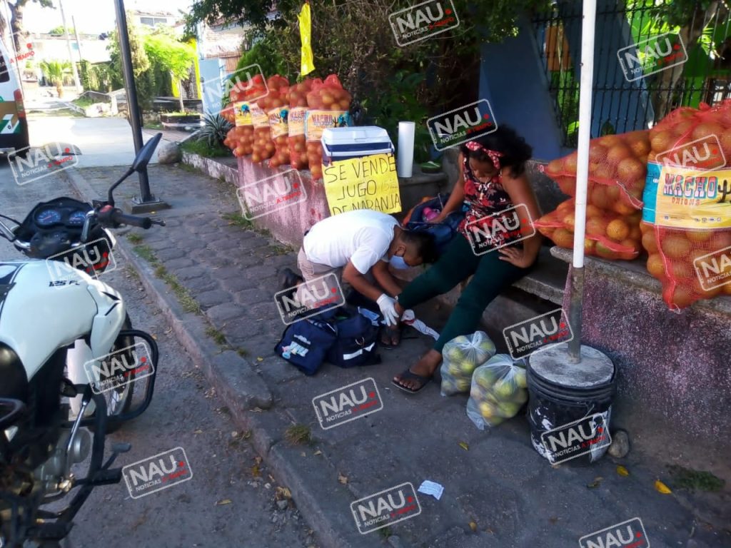 La señora derrapó en su motocicleta y fue atendida por paramédicos de PC de MAPASTEPEC.