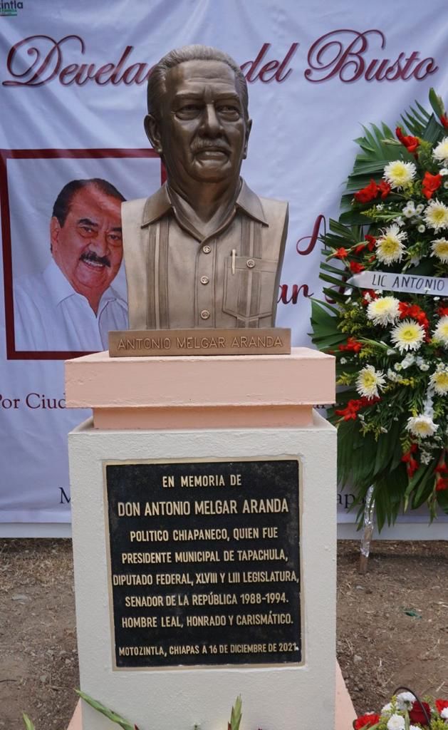 “Don Antonio Melgar Aranda, político chiapaneco, quien fue presidente municipal de tapachula, diputado federal Y XLVIII y LIII Legislatura, Senador de la República 1988-1994, hombre leal, honrado y carismático.” Palabras que plasmaron el mensaje de la placa conmemorativa y sellan con enorme sentimiento este emotivo evento.