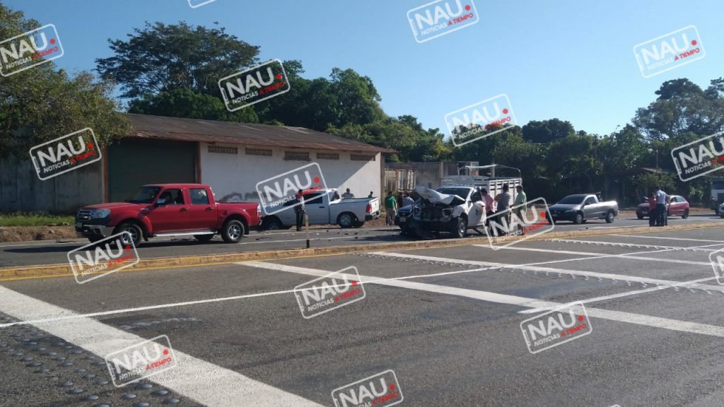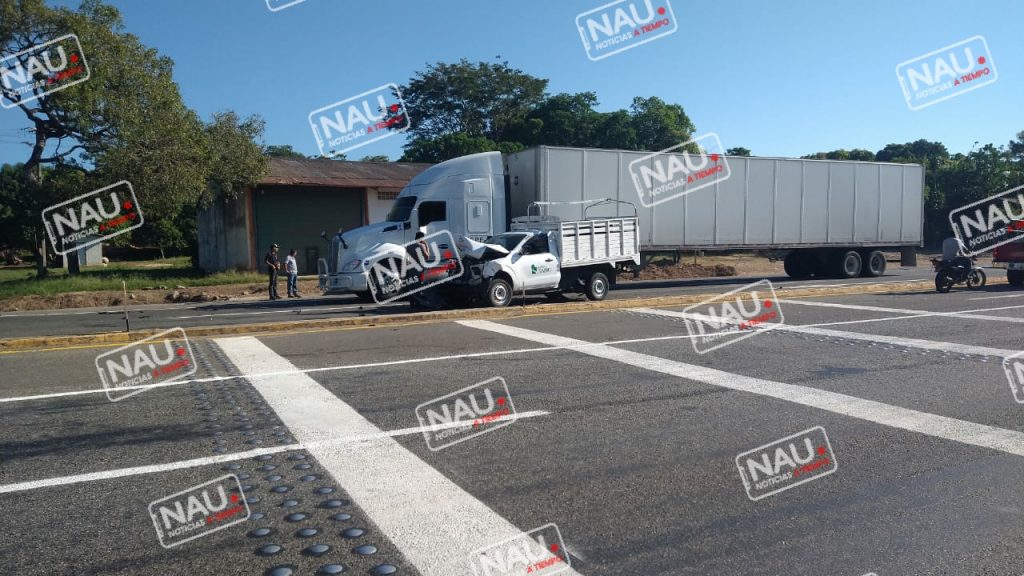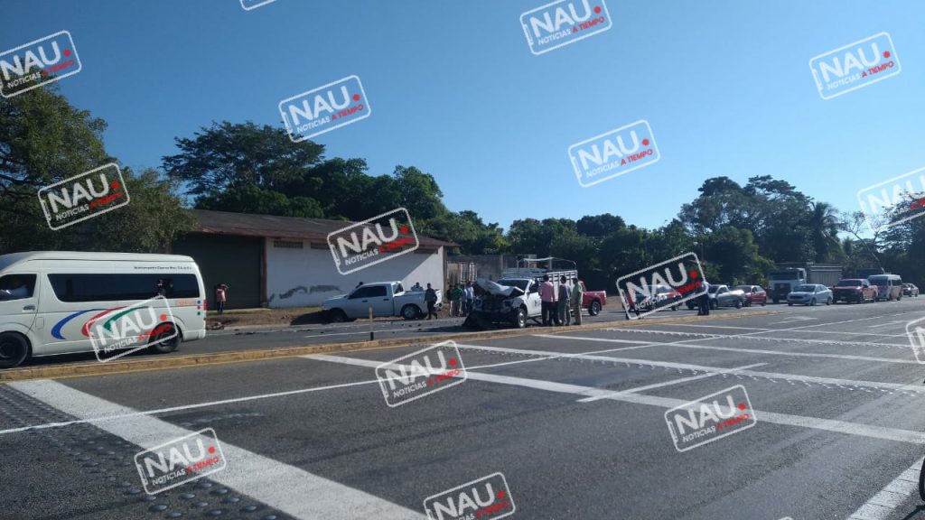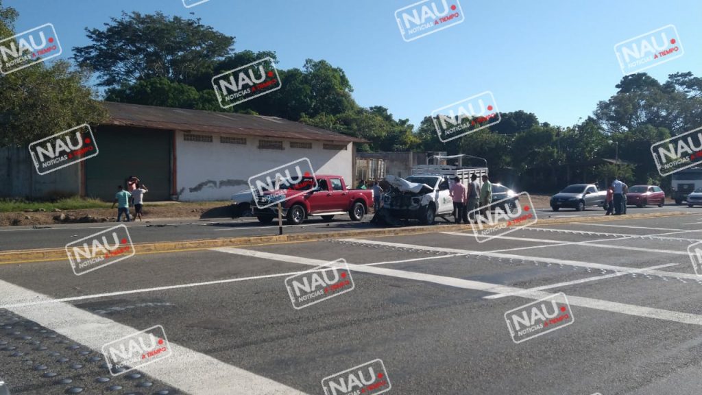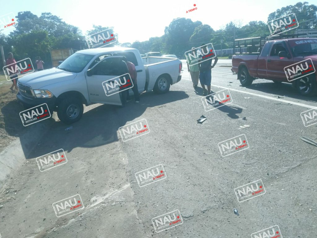 La unidad Nissan np300 de color blanco quedó con daños en la parte frontal mientras que el vehículo Ram 4 por 4 de color blanco quedó fuera de la cinta asfáltica al recibir el golpe por alcance.