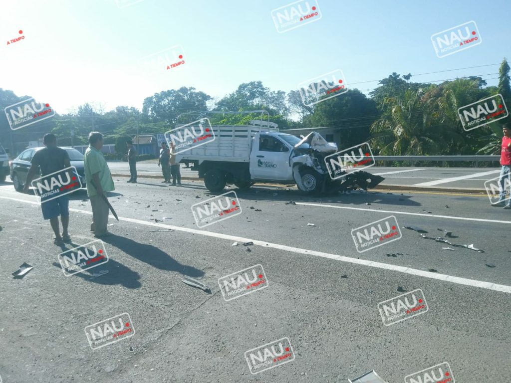 Altura del Ejido Poste Rojo, por no guardar su distancia se impacto por alcance contra el vehículo Ram 4×4 de color blanco, con placas del estado de México.
