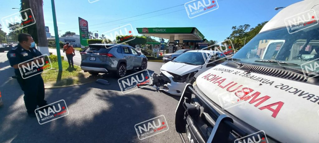 TAPACHULA, CHIAPAS.- Dos personas resultaron con crisis nerviosa al registrarse un accidente en la 17ª y 19ª calle oriente, frente a conocida gasolinera.