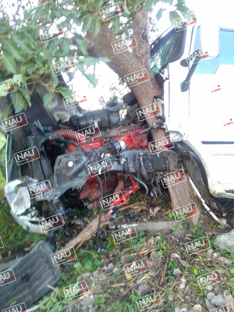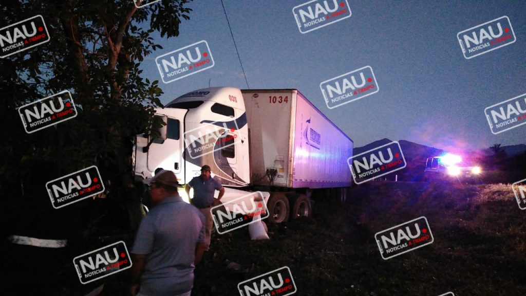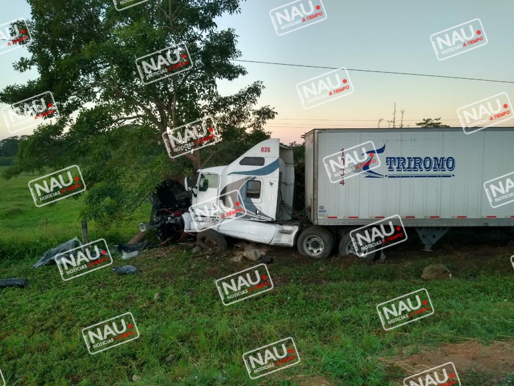 Mapastepec, Chiapas.- La mañana de este sábado se registra un accidente sobre la carretera Pijijiapan – Tapachula a la altura del kilómetro 183, donde un tráiler se salió de la carretera y chocó contra un árbol.