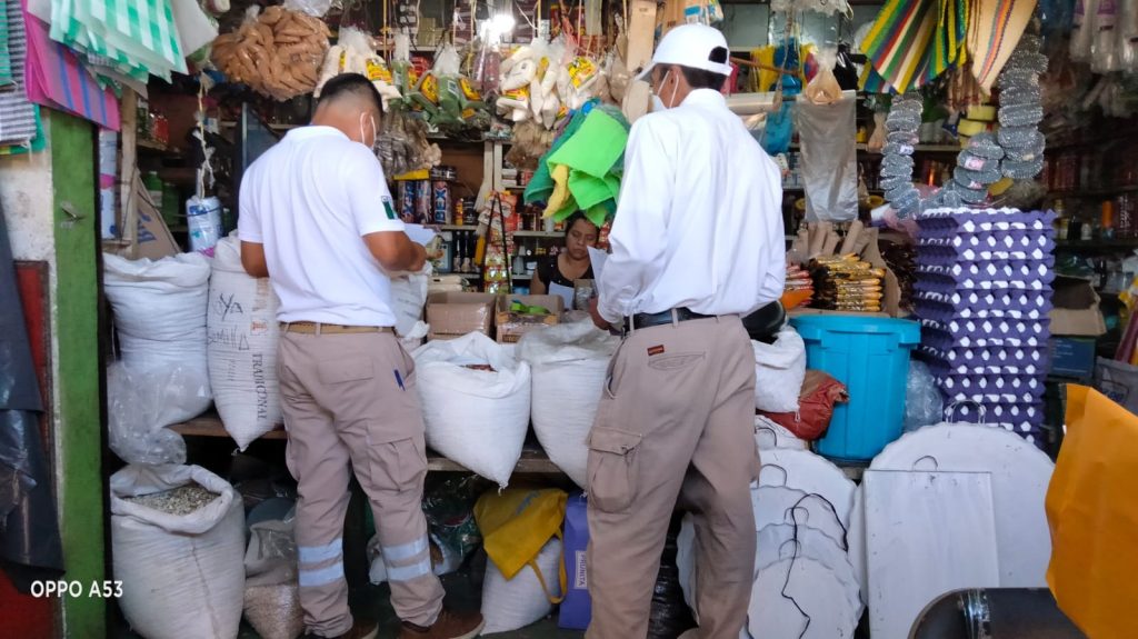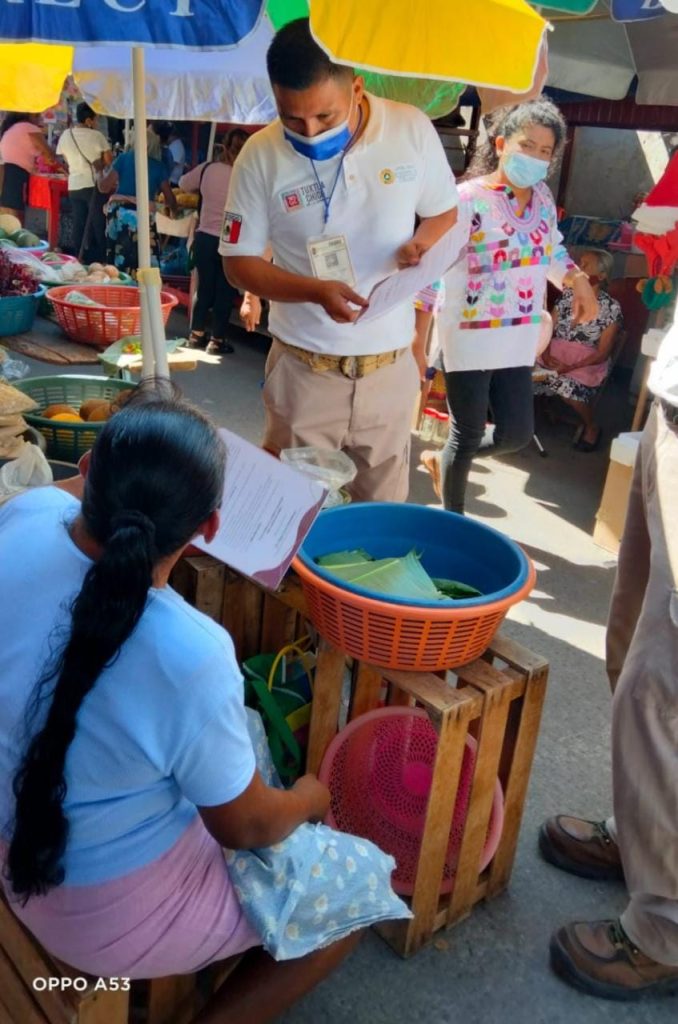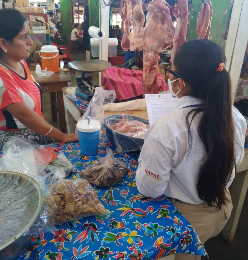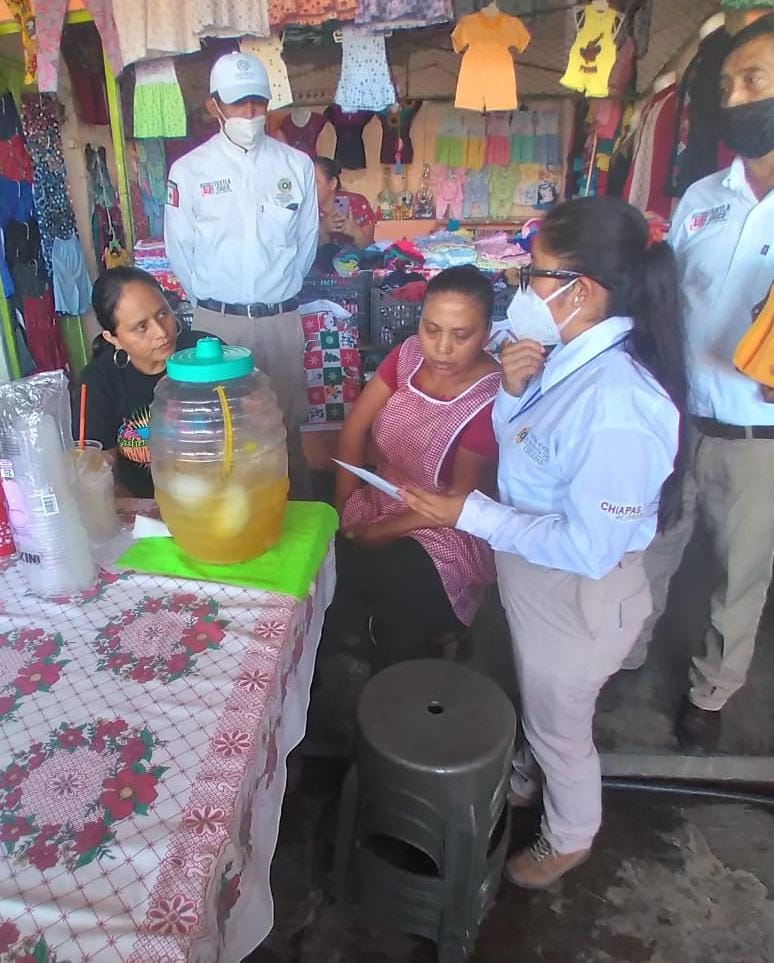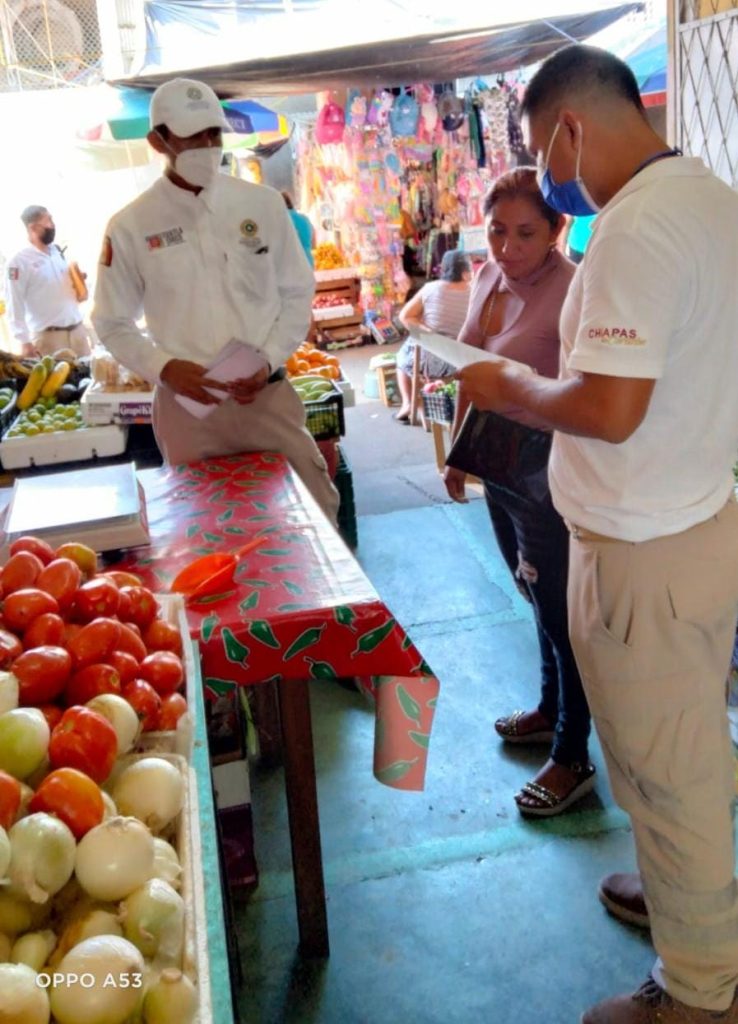 Se visitaron a más de 35 locatarios y personas ubicadas en el establecimiento del mercado del municipio y empresas bancarias y Farmacias Económicas, informó el director de PC Tuxtla Chico, Julio Cueto Tirado.