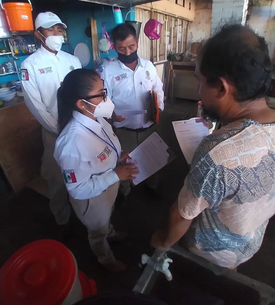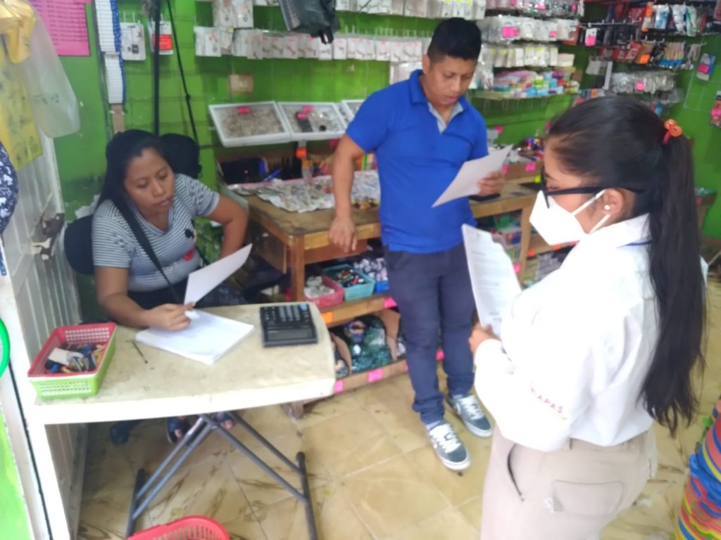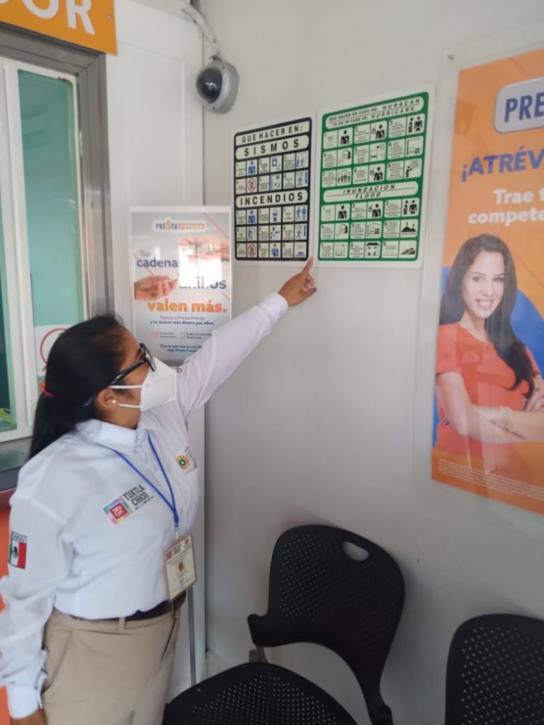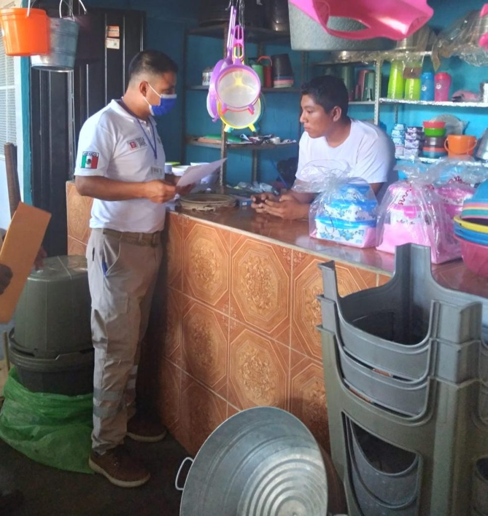 Se visitaron a más de 35 locatarios y personas ubicadas en el establecimiento del mercado del municipio y empresas bancarias y Farmacias Económicas, informó el director de PC Tuxtla Chico, Julio Cueto Tirado.