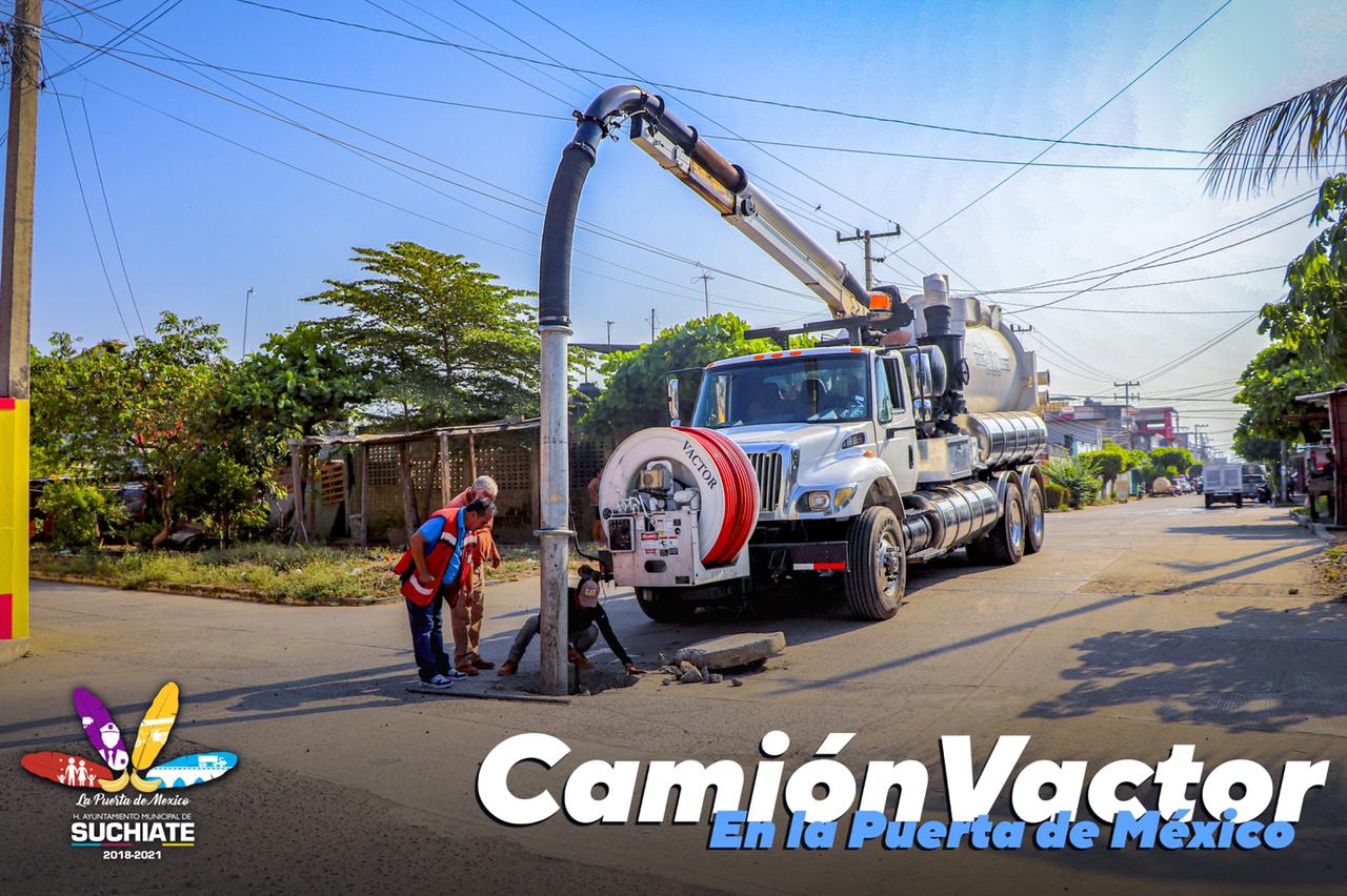 Con la adquisición de la unidad tipo Vactor, el Gobierno Municipal de Suchiate ha demostrado en pocas semanas con avances sustanciales resolver las principales quejas de la población en materia de limpieza, desazolve de drenajes, alcantarillas de las colonias de la zona urbana y comunidades rurales.