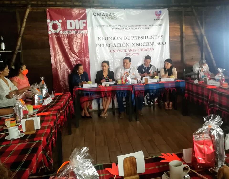 Unión Juárez, Chiapas.- Con la finalidad de beneficiar a las familias de Unión Juárez el Sistema Dif Municipal acargo de la presidenta honoraria Mercedes Ramírez Roblero fue la encarga de recibir en el municipio a las presidentas (es), directoras y (es) del sistema Dif de los municipios de Acacoyagua, Acapetahua, Cacahoatán, Escuintla, Frontera Hidalgo, Huehuetán, Huixtla, Mazatán, Metapa, Suchiate, Tapachula, Tuxtla Chico, Tuzantán y Villa Comaltitlán, pertenecientes al Dif Regiónal X Soconusco.