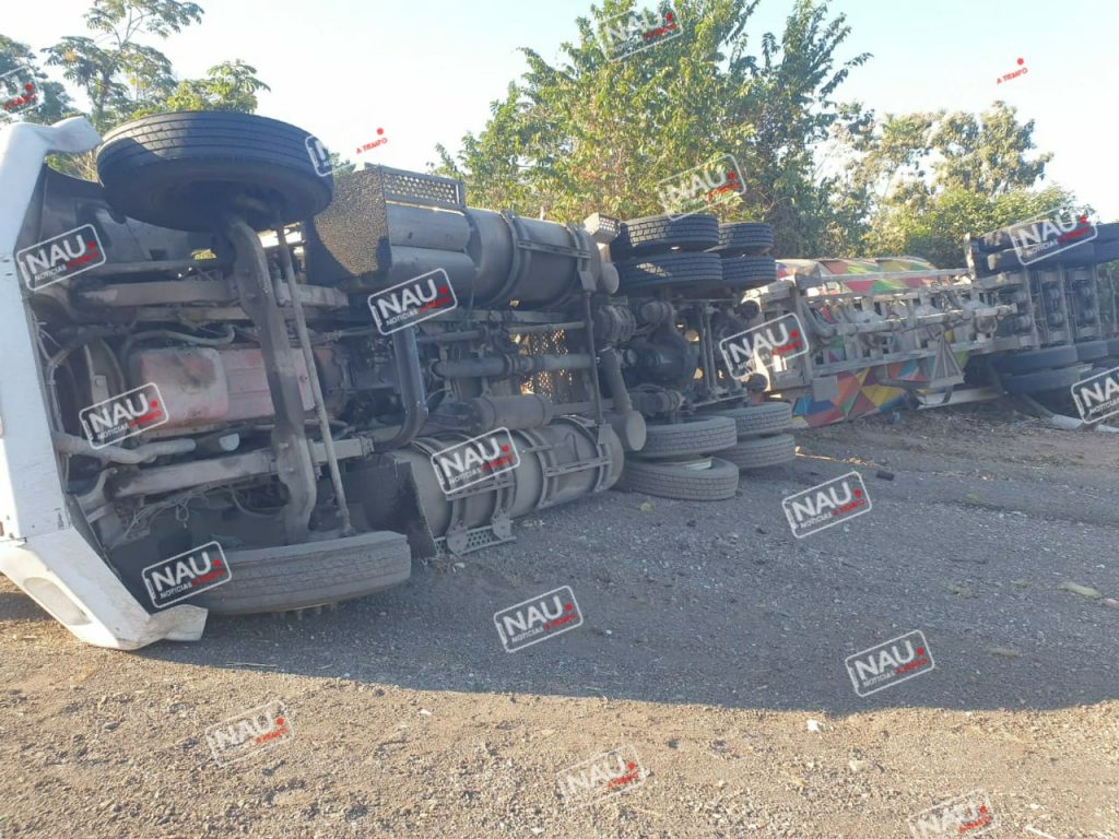 Tuzantán, Chiapas.- Un accidente que dejó daños materiales por varios miles de pesos, al volcarse un tráiler a la altura del kilómetro 252 “Cueva Del Diablo” fue reportado a las autoridades.