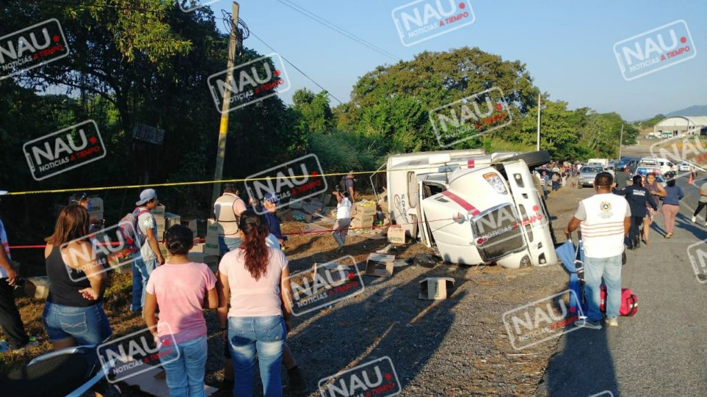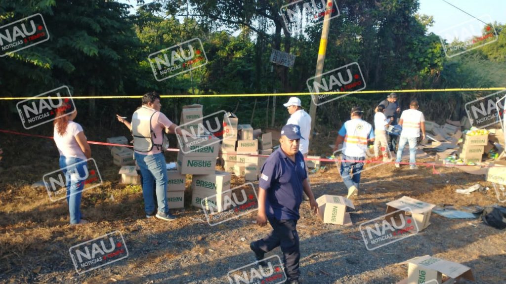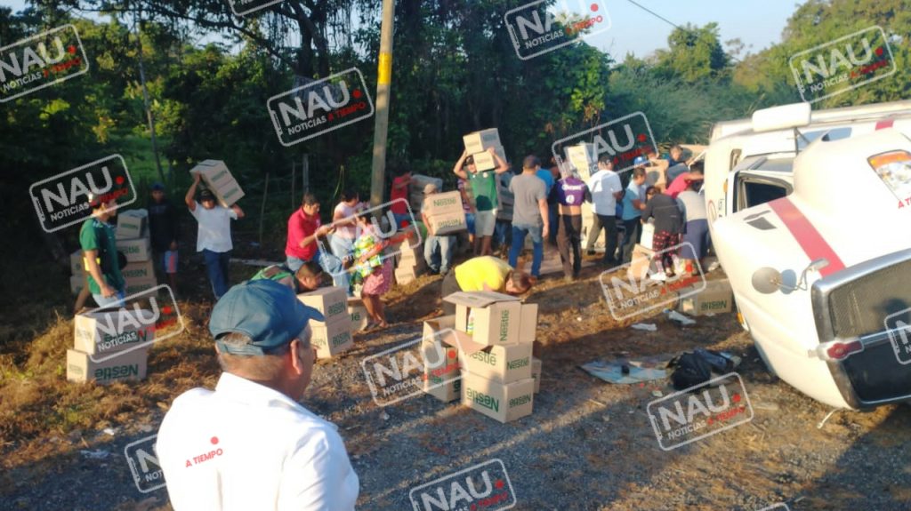 Huixtla, Chiapas.- Un camión cargado de leche, volcó en La curva del diablo, donde varias personas salieron a robarse las cajas; sin embargo elementos de la Policía Municipal y Estatal Preventiva lograron contener el robo de mercancía.