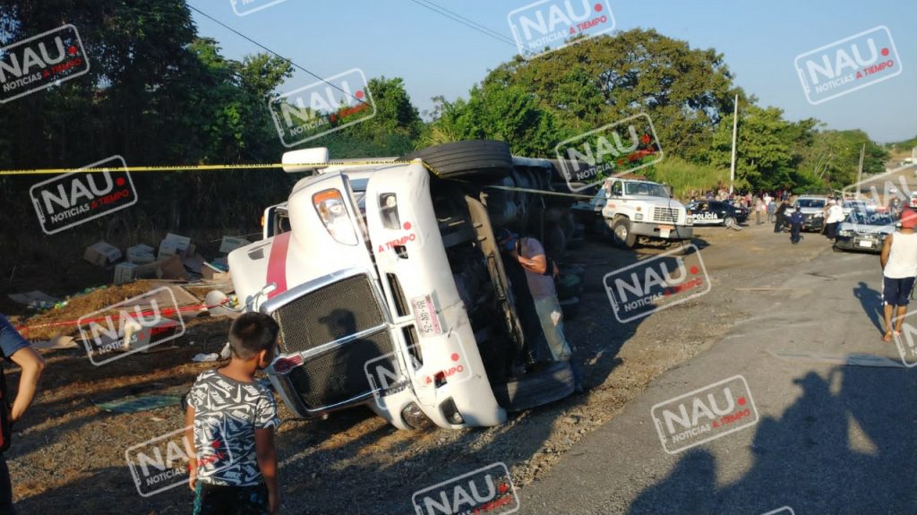 Alrededor de las 7 de la mañana de este jueves, reportaron que sobre la carretera Huixtla – Tapachula a la altura de La curva del diablo, el vehículo marca Kenworth color blanco, con franja roja propiedad de la línea nazca trucking, con placas de servicio público federal conducido por Víctor Alfonso “N” de 24 años de edad, con domicilio en Cuernavaca Morelos había volcado.
