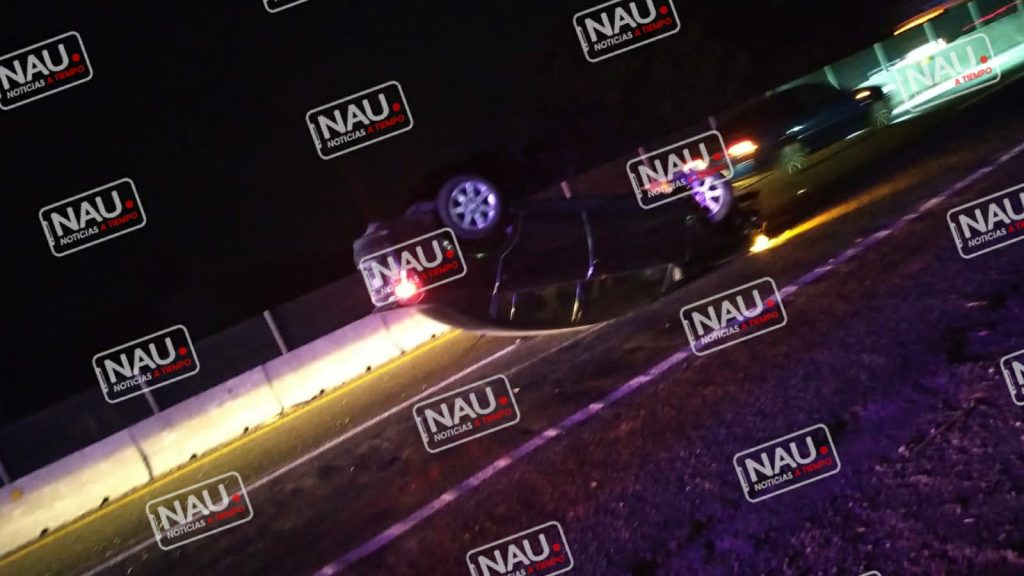 Debido al exceso de velocidad en que se desplazaba el conductor, pierde el control del volante y se impactó contra el muro de contención central y terminó con las llantas hacia arriba.