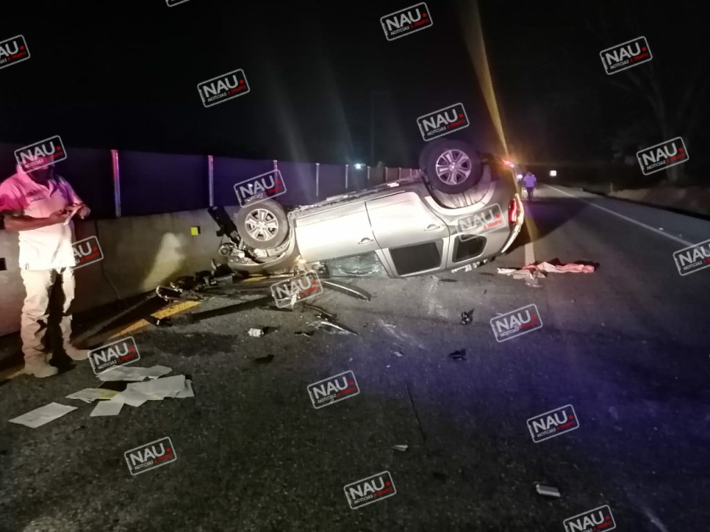 Luego del reporte del accidente elementos de la Policía Estatal Preventiva, arribaron al lugar para verificar el percance, donde localizaron un vehículo volcado sobre la cinta asfáltica.