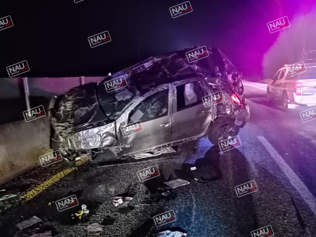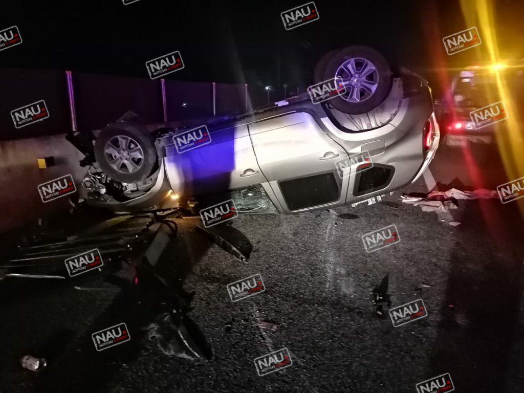 De acuerdo a testigos presenciales el conductor del vehículo viajaba solo y acceso de velocidad, por la falta de precaución pierde el control del volante invade carril contrario de alta velocidad y se impacta con la parte frontal izquierdo del muro de contención quedando volcado sobre su costado derecho.