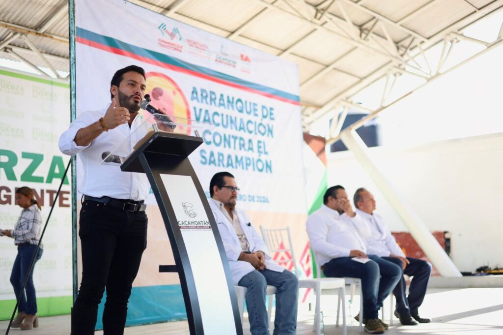 Cacahoatán, Chiapas | 13 de enero de 2026. Con el firme compromiso de salvaguardar la salud de las familias cacahoatecas, el Presidente Municipal, Víctor Pérez Saldaña, encabezó el inicio oficial de la campaña de vacunación preventiva contra el sarampión.