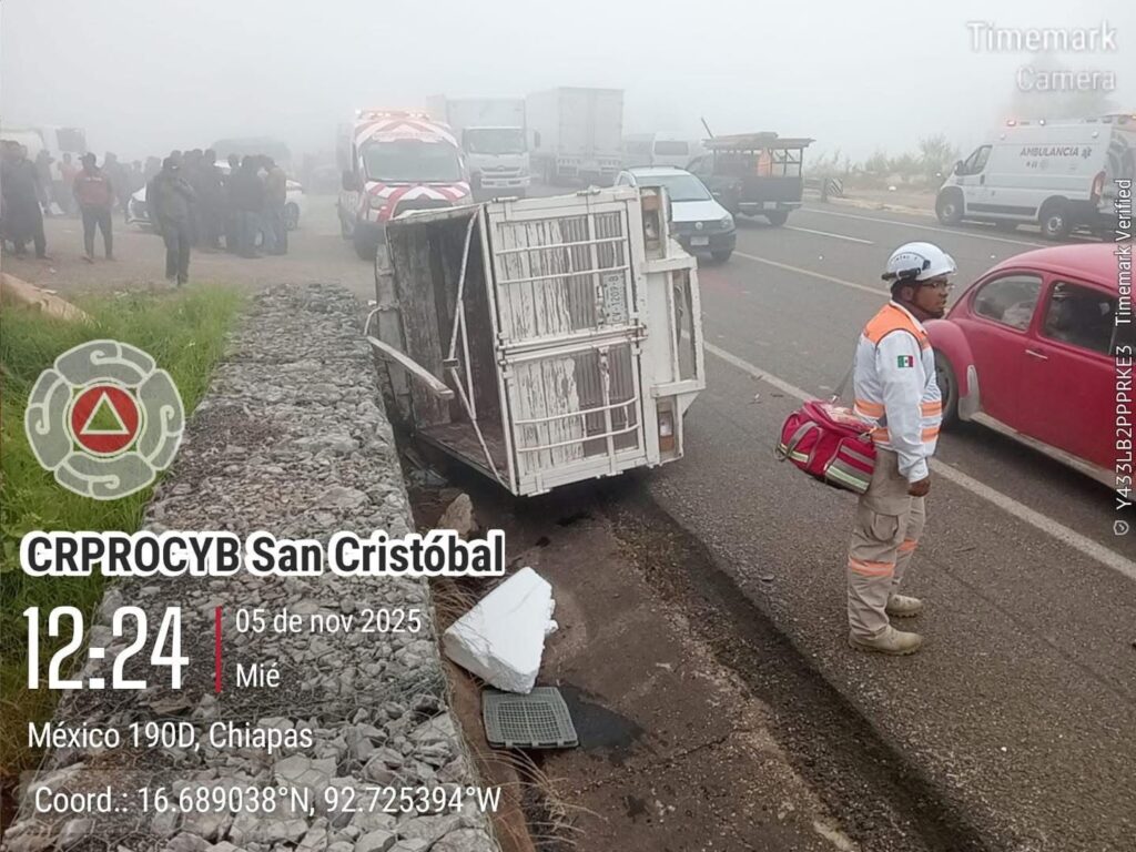 San Cristóbal de Las Casas, 5 de noviembre de 2025.– Elementos del Centro Municipal de Protección Civil y Bomberos (CMProcYB) de San Cristóbal de Las Casas brindaron atención médica prehospitalaria tras un accidente vehicular registrado en el kilómetro 36+200 de la autopista de cuota San Cristóbal–Chiapa de Corzo. La unidad de emergencia, al mando del comandante Arturo Darinel “N”, arribó al lugar en coordinación con personal de la Cruz Roja Mexicana de las delegaciones Chiapa de Corzo y San Cristóbal de Las Casas.