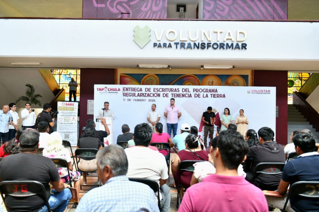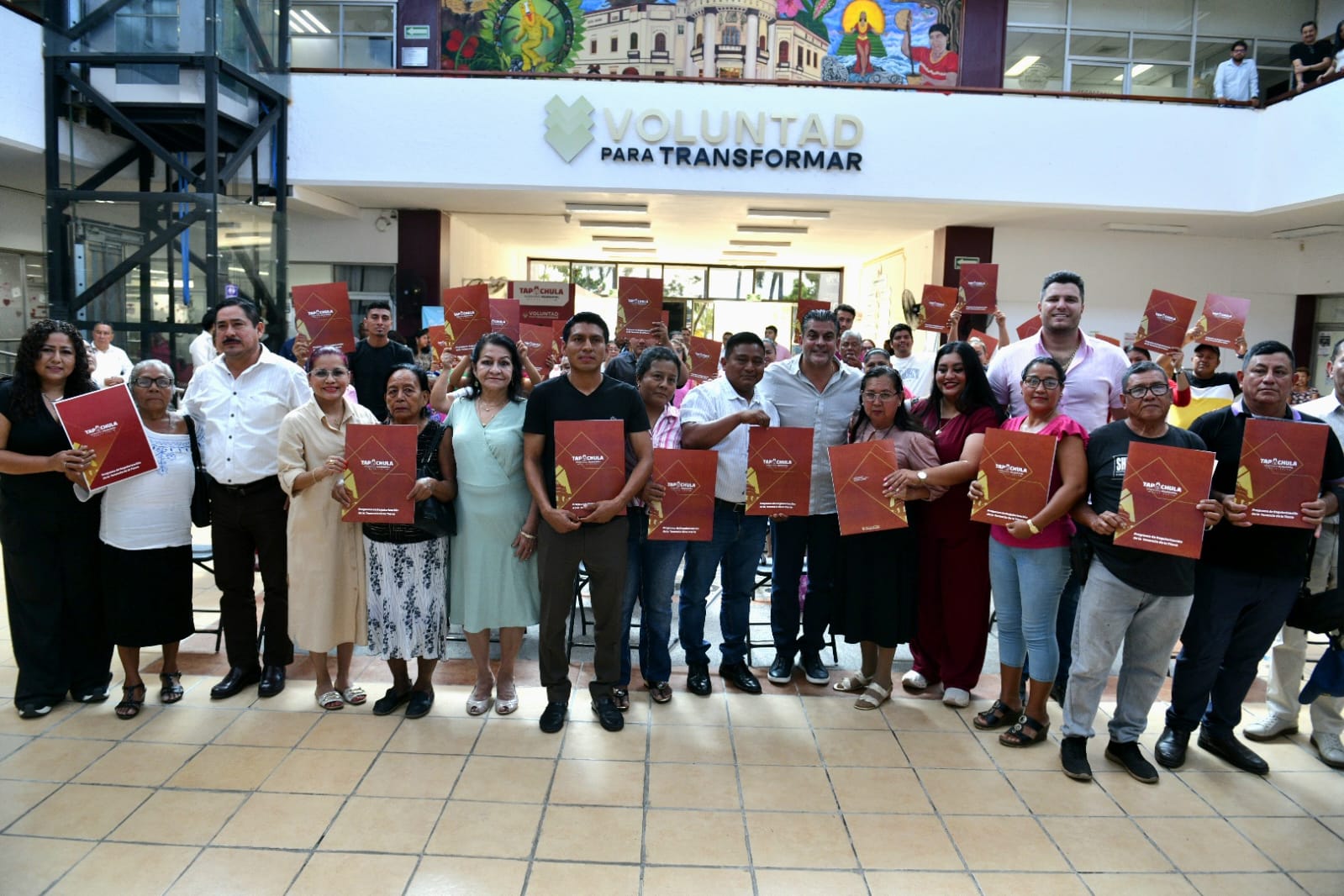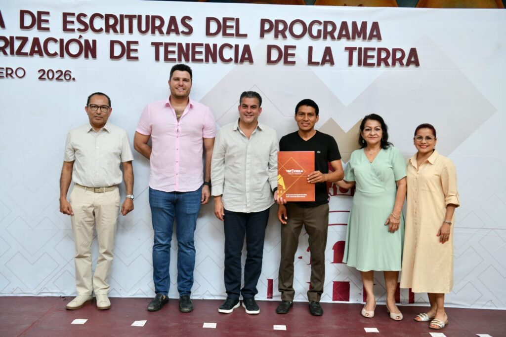 • 32 familias tapachultecas, recibieron escrituras públicas, como parte del Programa de Regularización de la Tenencia de la Tierra.