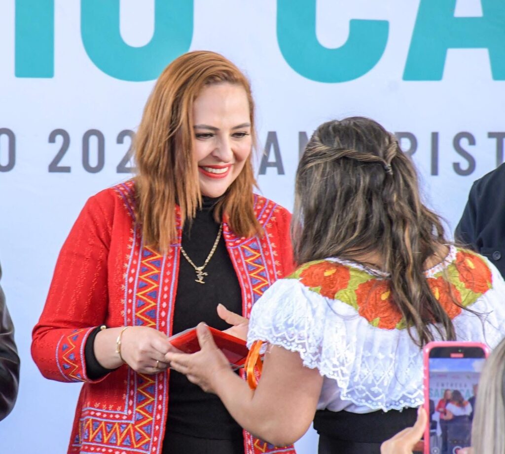 San Cristóbal de Las Casas, 13 de enero de 2026.– La presidenta municipal, Mtra. Fabiola Ricci Diestel, acompañó al gobernador de Chiapas, Dr. Eduardo Ramírez Aguilar, a la entrega de las Becas Rosario Castellanos, realizada en el CECyTE Plantel 20, como parte de la estrategia estatal para fortalecer la educación y reducir el rezago educativo en el municipio.