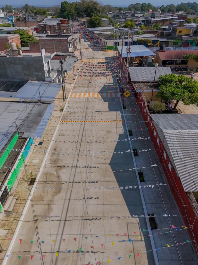 Detalló que, como parte de la pavimentación integral, también se realizaron trabajos en la red de drenaje sanitario, con la rehabilitación de 36 descargas, además de la red de agua potable, que incluyó 39 tomas domiciliarias, así como la instalación de alumbrado público con 10 luminarias de 100 watts, acciones que contribuyen directamente a mejorar la seguridad y los servicios básicos de la zona.