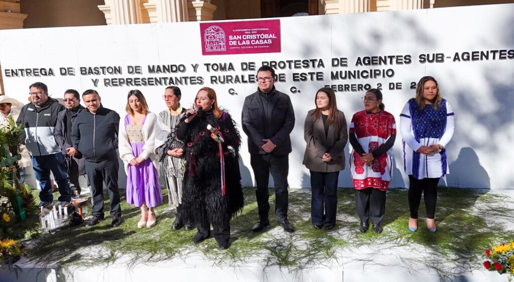 San Cristóbal de Las Casas, 02 de enero de 2026.— En un acto solemne cargado de simbolismo cultural y espiritual, representantes de las 107 comunidades del municipio realizaron la entrega y purificación del Bastón de Mando a la presidenta municipal, Fabiola Ricci Diestel, reafirmando la legitimidad y ratificación de su mandato popular.